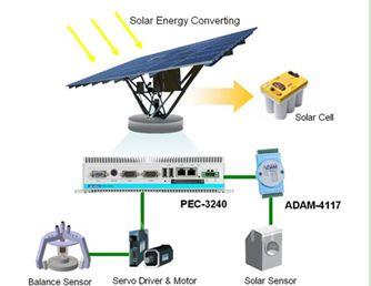 采用PEC-3240作為控制裝置,有效保證了太陽發(fā)電自動光源跟蹤系統(tǒng)的無故障、不停機的可靠高效運行。這種定位系統(tǒng)充分顯示了PEC-3240無與倫比的實力與優(yōu)越性,證明了PEC-3240能夠在諸多類似的運動控制中應用。這款嵌入式運動控制器不僅能夠簡化現(xiàn)有的系統(tǒng)架構(gòu),降低成本,其強固性設計理念還確保了系統(tǒng)的可靠性。通過集成ADAM遠程I/O模塊,PEC-3240所具備的靈活性能夠滿足更多不同系統(tǒng)的應用。