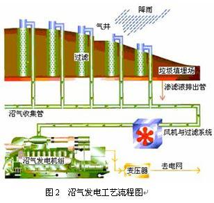 垃圾沼氣發(fā)電系統(tǒng)分為收集系統(tǒng)、抽氣系統(tǒng)、凈化系統(tǒng)、發(fā)電系統(tǒng)四大部分。