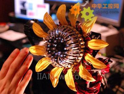 這個向日葵機器人原型是由九州大學(xué)的Akira Nakayasu所設(shè)計,它是一個機械植物,可模仿植物的向日性,就像向日葵在白天追隨太陽移動的方向一樣,只是這臺機器人追隨的不是太陽,而是人類的手。