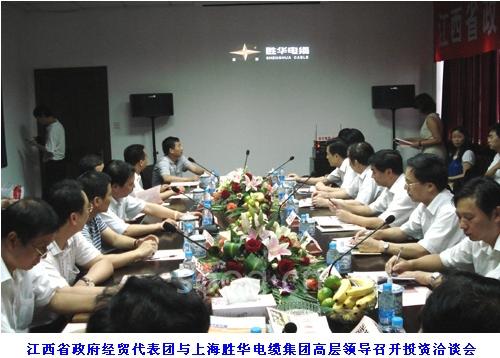本網(wǎng)訊 8月6日下午,洪禮和副省長(zhǎng)率江西省政府經(jīng)貿(mào)代表團(tuán)一行蒞臨上海,對(duì)上海勝華電纜集團(tuán)進(jìn)行了全面考察,并召開投資洽談會(huì),他說,紅色的江西、發(fā)展的江西、開放的江西,歡迎勝華集團(tuán)張勝飛董事長(zhǎng)等長(zhǎng)三角優(yōu)秀的企業(yè)家去投資置業(yè),再創(chuàng)輝煌。