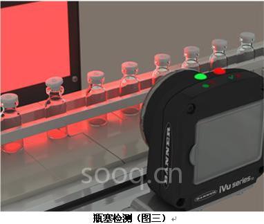 為了保證每個(gè)藥瓶在灌裝結(jié)束后瓶塞能夠準(zhǔn)確的蓋上,通過(guò)設(shè)定iVu圖像傳感器的Area+Motion工具進(jìn)行檢測(cè),瓶塞必須進(jìn)入到瓶頸的正確位置后才能保證合格的密封,因此圖像傳感器通過(guò)檢測(cè)每個(gè)瓶塞在瓶頸的位置是否達(dá)到要求,如果達(dá)不到要求則給生產(chǎn)線發(fā)出FAIL信號(hào),將該產(chǎn)品剔除。通過(guò)邦納機(jī)器視覺(jué)iVu系統(tǒng),可以將達(dá)不到要求的產(chǎn)品一一“挑揀”出來(lái)。