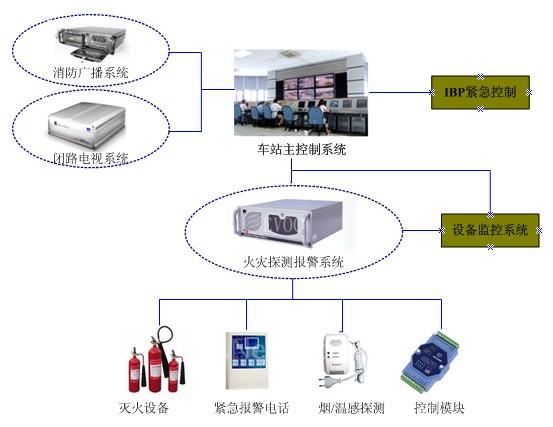 當(dāng)火災(zāi)發(fā)生時,F(xiàn)AS通過控制盤的通信接口,直接向BAS發(fā)出火災(zāi)命令,由BAS自動啟動相關(guān)模式,從而控制防排煙及其他消防設(shè)備進(jìn)入救災(zāi)狀態(tài),同時將模式指令發(fā)送給MCS,MCS收到模式指令后,由正常運行模式轉(zhuǎn)為火災(zāi)運行模式,監(jiān)視設(shè)備的狀態(tài);根據(jù)現(xiàn)場報警、列車位置等有關(guān)信息,使行車指揮、防災(zāi)和安全等子系統(tǒng)協(xié)調(diào)工作。為保證安全,在每個車站車控室設(shè)置統(tǒng)一綜合的緊急后備控制盤(IBP)。