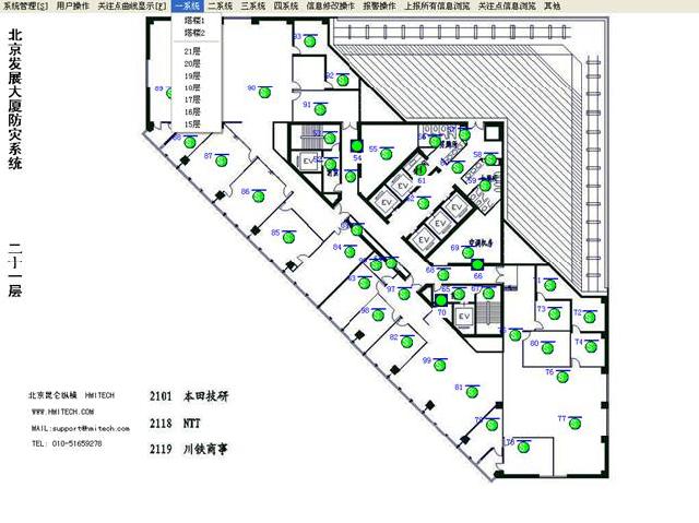 數(shù)據(jù)對象報警——我們通過:火災(zāi)報警、手報報警、煤氣報警、智能探測器故障、末端機(jī)器故障、感知器故障和煤氣設(shè)備故障七個數(shù)值數(shù)據(jù)對象,存放報警的合成地址(比如:系統(tǒng)號 1 地址號 11 通番1的設(shè)備發(fā)生火災(zāi),那么合成地址為:10111,而且合成地址>=10000),對象的報警屬性為上限報警,報警值為10000。報警對象在正常情況下,賦值為0,當(dāng)設(shè)備報警產(chǎn)生,報警對象被賦合成地址,所以,數(shù)據(jù)對象產(chǎn)生報警。