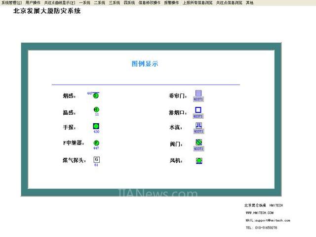 工程系統(tǒng)需要:控制的風(fēng)門;對煙感和溫度報警的監(jiān)測(包括報警提示、消音、復(fù)位等);五個監(jiān)測點的測量值的曲線顯示;