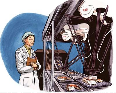 那么,以效率與穩(wěn)定性見長的自動化生產(chǎn)在食品衛(wèi)生與醫(yī)藥領(lǐng)域?qū)缪菔裁礃拥慕巧??過去,促使企業(yè)投資機器人拾料、包裝、貨盤堆垛系統(tǒng)的動力往往是節(jié)省勞動力。ABB機器人業(yè)務(wù)部消費品工業(yè)市場經(jīng)理Frank-Peter Kirgis指出:“現(xiàn)在,其他方面因素的重要性日益顯現(xiàn)。隨著衛(wèi)生型、易用型拾料包裝機器人的推出,隨著集成視覺系統(tǒng)的可沖洗版高速機器人的問世,人們越來越關(guān)注機器人在提高產(chǎn)量、穩(wěn)保質(zhì)量、改善衛(wèi)生條件等方面的優(yōu)勢?!?