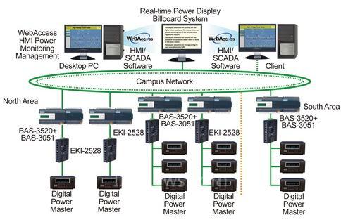 該學(xué)校采用基于網(wǎng)絡(luò)的電力監(jiān)測(cè)管理系統(tǒng),包含研華WebAccess軟件和BAS-3520 DDC。系統(tǒng)的運(yùn)行不僅幫助大學(xué)、學(xué)校工作人員和學(xué)生進(jìn)行電能的管理,同時(shí)讓我們可以更高效的使用能源,節(jié)能的概念深入人心,我們才會(huì)擁有更“綠色”的未來。