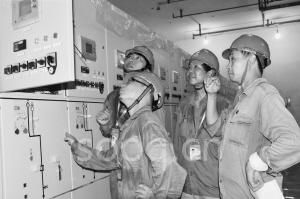 變電站電氣設備安裝人員在檢查就位后的配電開關(guān)柜內(nèi)部設施。