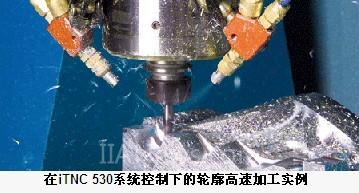 高速切削代表著快速和高效地銑輪廓。數(shù)控系統(tǒng)必須能快速傳輸大量數(shù)據(jù),允許高效編輯長(zhǎng)程序并使加工出的工件具有理想輪廓,這都是iTNC 530所具備的優(yōu)點(diǎn)。除了NC程序外,最終用戶也可以通過(guò)固定循環(huán)指定輪廓加工的精度。只需用循環(huán)向數(shù)控系統(tǒng)輸入最大允許的與理想輪廓的偏差。iTNC 530將自動(dòng)按所要求的偏差調(diào)整加工而且它能保證不損壞輪廓。
