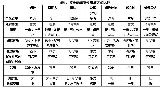 其中目前市場(chǎng)上常用的可以滿足貿(mào)易級(jí)液位計(jì)要求的測(cè)量方式有:磁致伸縮液位計(jì)、伺服式液位計(jì)、雷達(dá)液位計(jì)、靜壓式液位計(jì)等,靜壓式液位測(cè)量系統(tǒng)(HTG)因?yàn)檫^(guò)于過(guò)于復(fù)雜,維護(hù)量大等缺點(diǎn),使用量越來(lái)越少。而雷達(dá)液位計(jì)作為一種高精度的液位測(cè)量方式,因其量程大、安裝方便、維護(hù)量低等優(yōu)點(diǎn),越來(lái)越多的得到客戶的認(rèn)可和接受;而且近幾年,雷達(dá)液位計(jì)的價(jià)格也逐年降低,也使很多普通的用戶也開始采用起雷達(dá)液位計(jì)作為儲(chǔ)罐的液位測(cè)量方案。