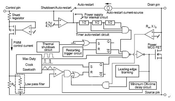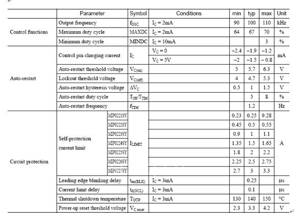 電路簡單歸簡單,你還是想弄清IC11——MIP0223SC這只電源模塊的來龍去脈——電路是如何工作的,弄不通這一點,電路倒真是簡單得太沒勁了。下面看IC11的原理圖資料表(又是英文的,沒辦法,中文的難找):