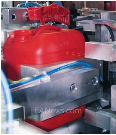 與類似的機器相比,該成型機的另一顯著特點是,不會有廢棄物料隨意污染機器內(nèi)部。這是由于機器在成型把手和桶蓋的開口時,清除系統(tǒng)會自動分離所產(chǎn)生的殘留物。此外,下游檢測裝置可以對塑料桶制品的不滲透性和重量進行測試。由于該檢測裝置與機器的控制器相連,必要時可通過調(diào)節(jié)擠塑模頭來控制塑料的擠出量,以使生產(chǎn)損失進一步減小。得益于清除系統(tǒng)和下游檢測裝置,使該機的廢品率得到了最大程度的控制。