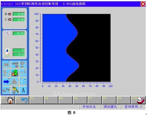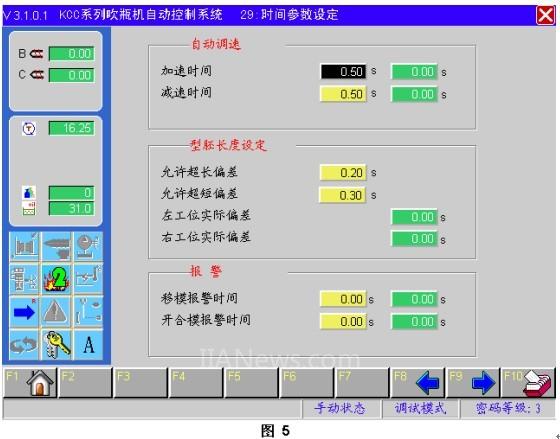 4、修改了型胚長(zhǎng)度自動(dòng)調(diào)節(jié)系統(tǒng)的軟件,能做到雙工位的自動(dòng)調(diào)節(jié)。(見圖5)