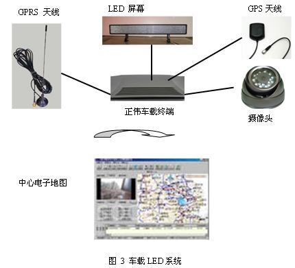 正偉在此基礎(chǔ)上最新推出的出租車專用LED+照相+GPS定位系統(tǒng)及終端,終端采用32位RAM單片機(jī)控制,將信息發(fā)布以及GPS監(jiān)控,照相集成一體,具有成本更低,體積更小,性能更可靠,安裝和使用超方便等優(yōu)點(diǎn)。是傳統(tǒng)出租車定位系統(tǒng)的升級(jí)和換代產(chǎn)品?,F(xiàn)已經(jīng)在部分城市開始大規(guī)模安裝。新系統(tǒng)全部部采用GPRS通訊方式,大大降低了用戶和廣告商的使用成本(只需要一張SIM卡)。由于采用GPRS廣告信息下行,杜絕了過去的短信造成的延時(shí)。帶照相的GPS系統(tǒng),在乘客上車時(shí),GPS會(huì)通過攝像頭自動(dòng)抓拍一張照片,儲(chǔ)存在出租車的GPS儲(chǔ)存芯片中,一旦發(fā)生搶劫等案件,將被用來作為投訴舉報(bào),尋找物品,報(bào)警取證的憑證。這給那些意圖不軌的人以足夠的震懾,而且方便了乘客叫車服務(wù)。實(shí)際的車載LED系統(tǒng)如圖所示: