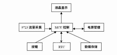 水表包括流速采集、微控制器、電源管理、按鍵、數(shù)據(jù)存儲(chǔ)和液晶顯示幾部分組成