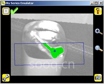 在包裝線的上方安裝iVu圖象傳感器來確保每個包裝盒內(nèi)都附帶有說明書,通過設定Match工具來進行檢測,Match工具可以360度范圍對被測物進行查找,因此藥盒內(nèi)的說明書的擺放可以是任意角度的,但表面必須朝上。當檢測到藥盒內(nèi)沒有說明書時,傳感器會給生產(chǎn)線發(fā)出FAIL信號,從而將該藥盒剔除?!?