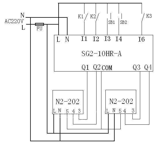 根據(jù)內(nèi)圓磨床的工作原理及控制復(fù)雜程度,選擇臺安智能繼電器SG2-10HR-A控制磨床自動工作動作,兩臺N2-202-H變頻器分別控制頭架電機和砂輪電機動作。