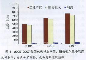 我國的電機(jī)行業(yè)屬于低附加值的勞動密集型行業(yè),競爭激烈,供大于求,利潤微薄。統(tǒng)計(jì)數(shù)據(jù)顯示,2005年到2007年,行業(yè)的凈利率分別僅有3.2%、5.3%和5.5%(圖4)。