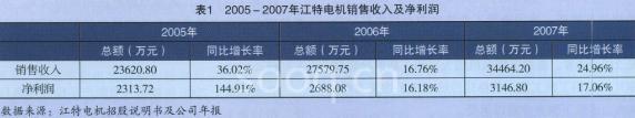 與普通標(biāo)準(zhǔn)電機(jī)相比,特種專用電機(jī)生產(chǎn)企業(yè)日子要好過一些,以生產(chǎn)起重冶金電機(jī)、電梯電機(jī)、高壓電機(jī)為主的江西特種電機(jī)股份有限公司是經(jīng)濟(jì)發(fā)展和工程建設(shè)的直接受益者,業(yè)績連年保掙陜速增長,2005年到2007年凈利潤率分別是9.8%、9.7%和9.1%,明顯高于行業(yè)平均水平(表1)。