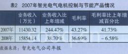 其變頻調(diào)速產(chǎn)品近年來增速迅猛,2007年該公司的電機(jī)控制與節(jié)能類產(chǎn)品業(yè)務(wù)收入為1.14億元,同比增加244.5%,毛利率43.3%,同比增加41.7%。在2008年,內(nèi)部產(chǎn)能擴(kuò)張和外部經(jīng)濟(jì)環(huán)境惡化導(dǎo)致毛利率略有下降,但業(yè)務(wù)收入仍有不小的增長(表2)。