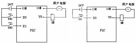 在PLC控制系統(tǒng)設(shè)計(jì)中,常常碰到負(fù)載的起動(dòng)與停止控制,通常的做法是采用兩只按鈕作為外部起動(dòng)與停止控制的輸入器件, 在PLC中與兩只按鈕相對應(yīng)的輸入點(diǎn)數(shù)也有兩個(gè),PLC的外部接線如圖1所示,按鈕SB1(X0)作為起動(dòng)控制,按鈕SB2(X1)作為停止控制,這樣雖然可以達(dá)到控制目的,但需要的按鈕和連接導(dǎo)線較多,PLC的輸入點(diǎn)數(shù)也較多。但在實(shí)際工作中,可以充分利用PLC內(nèi)部多功能化的特點(diǎn),采用單個(gè)按鈕控制負(fù)載的起動(dòng)與停止,進(jìn)行改進(jìn)后的PLC外部接線如圖2所示,用SB替代SB1 和SB2的功能,用X0替代X0和X1的功能,電路的實(shí)際接線就大大簡化,這樣做不僅節(jié)省了硬件成本,而且還大大減少了由于按鈕多而可能引起的故障.使電路更加經(jīng)濟(jì)合理、安全可靠,控制方便簡單,具有很高的實(shí)用價(jià)值。筆者根據(jù)實(shí)際的工作經(jīng)驗(yàn)和研究成果,以松下電工FP0系列PLC為例介紹幾種單按鈕起??刂频腜LC編程技術(shù)。