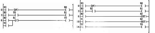 圖3 采用上升沿微分指令編程的梯形圖程序 圖4采用置位/復(fù)位指令編程的梯形圖程序