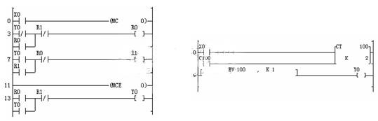 圖9 采用MC/MCR指令編程的梯形圖程序 圖10用基本比較指令編程的梯形圖
