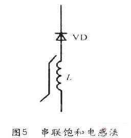 串聯(lián)飽和電感(尖峰抑制器)是解決二極管反向恢復(fù)問(wèn)題的另一種常用方法,如圖5所示?! ?