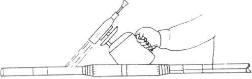 14.熱縮套管下方加溫收縮后,噴燈向兩端(先從任一端)圓周移動加熱,溫度指示漆應(yīng)均變色,直至完全收縮,再把噴燈移到另一端也是圓周移動加熱,直至整個熱縮管收縮成型.