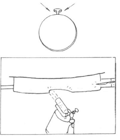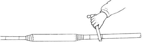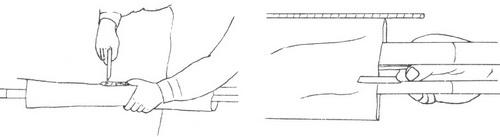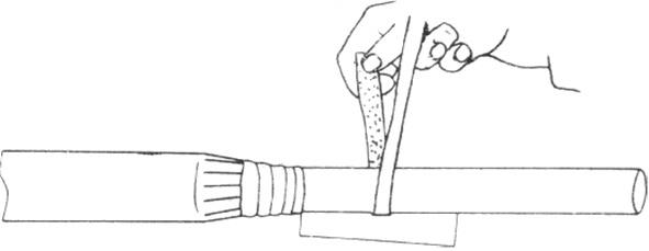 15.整個熱縮套管加熱成形后,再對整個夾條(拉鏈)兩側(cè)均勻加熱約一分鐘左右,然后用錘子柄輕敲打熱縮管兩端彎頭處夾條(拉鏈),使熱縮套管夾條(拉鏈)與內(nèi)襯套緊密粘合.