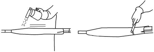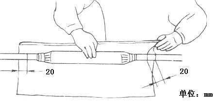 7.在熱縮套管兩側(cè)向內(nèi)側(cè)20毫米處的電纜護(hù)套劃上標(biāo)記.