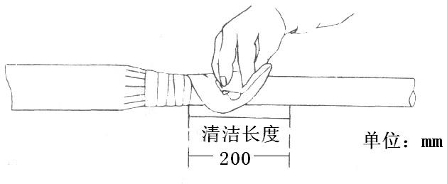 5.用清潔劑清潔內(nèi)襯管的兩端電纜外護(hù)套,長度為200mm.