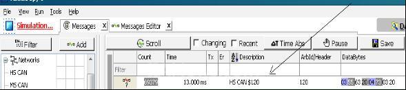 步驟1:進入報文接收窗口,提取該條報文:創(chuàng)建報文,設置報文名稱為 “my message” 設置報文ID為120,設置顏色為紅色以便于查看