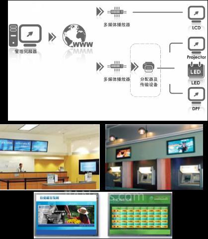銀行多媒體信息發(fā)布系統(tǒng)采用先進的技術(shù),針對銀行網(wǎng)點,通過網(wǎng)絡(luò)進行遠程終端統(tǒng)一管理的方式將視音頻信號、圖片和滾動字幕,以高清數(shù)字信號播出,第一時間將資訊傳遞到網(wǎng)點的員工和顧客。系統(tǒng)由三部分所組成,即中控管理軟件、播放器、終端顯示設(shè)備,由管理員進行管理軟件的操控,在進行節(jié)目內(nèi)容的編輯及排程后,將內(nèi)容發(fā)布到顯示端的播放器中,最后由顯示終端呈現(xiàn)出來,在這樣一個系統(tǒng)架構(gòu)下,客戶可以輕松的管理系統(tǒng)。