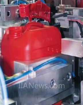 與類似的機器相比,該成型機的另一顯著特點是,不會有廢棄物料隨意污染機器內(nèi)部。這是由于機器在成型把手和桶蓋的開口時,清除系統(tǒng)會自動分離所產(chǎn)生的殘留物。此外,下游檢測裝置可以對塑料桶制品的不滲透性和重量進行測試。由于該檢測裝置與機器的控制器相連,必要時可通過調(diào)節(jié)擠塑模頭來控制塑料的擠出量,以使生產(chǎn)損失進一步減小。得益于清除系統(tǒng)和下游檢測裝置,使該機的廢品率得到了最大程度的控制。