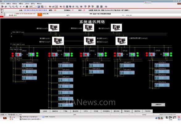 該系統(tǒng)包括2臺操作員站、1對冗余數(shù)據(jù)服務器(同時兼作操作員站)、1臺工程師站、1臺值長站、5對冗余DPU站,采用了過程數(shù)據(jù)服務器冗余、控制總線和I/O總線冗余的網(wǎng)絡架構,提供了穩(wěn)定可靠,符合電廠生產(chǎn)要求的數(shù)據(jù)采集監(jiān)控和現(xiàn)場級控制工藝設計。