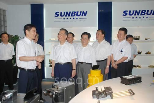 走進生產(chǎn)車間,顯示屏上“產(chǎn)業(yè)報國,把世界技術(shù)引進中國,讓中國技術(shù)引領(lǐng)世界”的大字吸引了溫總理一行。在圣邦新研發(fā)的大流量電液比例伺服閥測試系統(tǒng)面前,聽到了圣邦公司技術(shù)顧問浙江大學(xué)孔教授對該產(chǎn)品的介紹:“這是圣邦公司和浙江大學(xué)聯(lián)合研制的,主要用于壓鑄機、注塑機電液比例調(diào)速,可以實現(xiàn)程序控制,提高生產(chǎn)效率,是填補國內(nèi)空白、替代進口的產(chǎn)品,現(xiàn)該項產(chǎn)品正在測試階段?!睖乜偫肀硎玖丝隙ê椭С?,高興地說:“預(yù)祝你們成功?!睖乜偫硪恍性谑グ罟拒囬g足足考察了二十多分鐘。