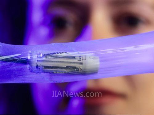 可“爬行”的相機膠囊設(shè)計了富有彈性的“腿”在病人的消化道內(nèi)蠕動,機器人還攜帶著相機,可替代傳統(tǒng)的內(nèi)鏡檢查術(shù)。該機器人用于研究食道、胃和十二指腸的損害或潰瘍,是由意大利比薩的CRIM實驗室開發(fā)。(圖:英國皇家外科醫(yī)生學院/意大利比薩圣安娜)