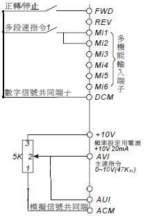 02-01=1 多功能輸入端子MI1為多段速指令一