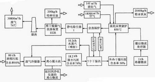 圖2 是一個(gè)典型的污泥焚燒工藝流程圖