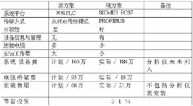 從上表可以看出,造成硬件成本升高的主要因素是自動化系統(tǒng)設(shè)備成本提高約10%,PA儀表成本升高約10%。但是可以大幅減少電纜橋架、控制電纜等附件的費用,同時可以大幅降低安裝施工和自控系統(tǒng)的安裝調(diào)試費用,縮短工期。