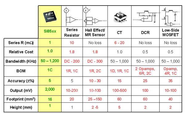 霍爾效應(yīng)和磁阻(MR)器件是通過(guò)檢測(cè)有電流流過(guò)的電感器產(chǎn)生的磁場(chǎng)來(lái)工作的,因此產(chǎn)生的功耗要低得多。但這些器件的工作帶寬較窄,體積大,成本高,而且輸出信號(hào)小,噪聲大,還有偏移和溫度誤差,這些都降低了測(cè)量的精度。