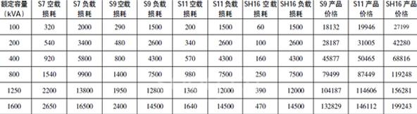 性能代號的涵義為:在S7型以上,空載損耗每降低約10%,代號“7”則在數(shù)字上加“1”。從S7型發(fā)展到S9型,負載損耗降低較多,平均為25%,后因沒有突破性新材質(zhì),負載損耗下降較困難。所以性能水平代號以空載損耗降低為標準。以400kVA為例,S7型空載損耗920W,S11型空載損耗570W,下降38%。