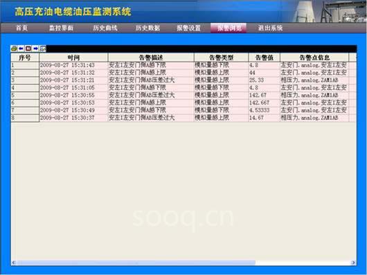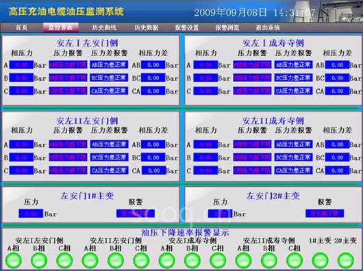 利用嵌入式技術(shù)和人機(jī)界面軟硬一體化系統(tǒng)監(jiān)視高壓充油電纜的油壓、壓差和壓力變化,實(shí)現(xiàn)報(bào)警處理、曲線顯示、數(shù)據(jù)存儲(chǔ)、數(shù)據(jù)上傳等功能。