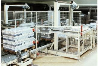 在硬盒包裝部分,其通過氣動和電動執(zhí)行機(jī)構(gòu)將紙板進(jìn)行提升和折疊來形成1個(gè)開口的紙板箱。通常在這個(gè)部分往往需要4~8個(gè)安全門,若干個(gè)急停按鈕來進(jìn)行防護(hù),安全等級要達(dá)到EN954-1的Cat.2或者3等級。在一些大型的機(jī)器上還會用到安全光幕。然后通過氣動和電動執(zhí)行機(jī)構(gòu)將已包含產(chǎn)品物料的塑料袋、易拉罐、玻璃瓶等裝入紙板箱包裹并進(jìn)行貼標(biāo)。通常在這個(gè)部分往往也需要4~8個(gè)安全門,若干個(gè)急停按鈕來進(jìn)行防護(hù),安全等級要達(dá)到EN954-1的Cat.2或者3等級。