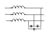 電壓型變頻器輸出的是三相SPWM波,即寬度按正弦規(guī)律分布的矩形脈沖波。這種波直接送給電動機(jī),由于電機(jī)是感性負(fù)載,所以能獲得近似的正弦驅(qū)動電流。在本設(shè)備中存在有幾千米的電纜線,若把PWM波直接加在電纜輸入端,由于長線效應(yīng)電機(jī)側(cè)會受到數(shù)倍于額定值的尖峰電壓的沖擊,電機(jī)很可能被燒壞。因此三相低通LC濾波器是必要的,濾波器電路如圖二.所示,在本設(shè)計(jì)中其截止頻率約為載波頻率的1/3。