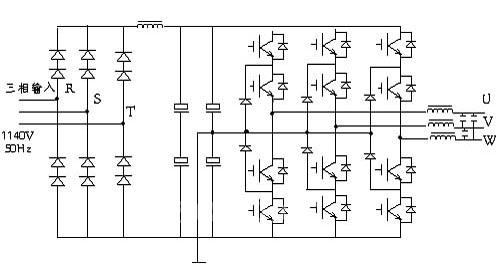 該設(shè)備為交——-直——-交電壓源型變頻調(diào)速系統(tǒng),即先將交流輸入整流為直流,再把直流逆變?yōu)樗桀l率的交流。通過控制程序可以自由改變其輸出頻率,從而可以平滑地軟啟動(dòng)電機(jī)、軟停車。再加上變頻器設(shè)有輸出濾波器,有較好的輸出波形補(bǔ)償,從而減少了由于輸出線較長(zhǎng)而造成的傳輸損耗。
