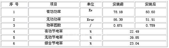 B、 有功功率降低幅度較大,有功節(jié)電率達(dá)到了22.49%,無功節(jié)電率為39.85%,綜合節(jié)電率為23.04%,節(jié)電效果較好。(見表2)