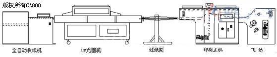 與轉(zhuǎn)頁式絲網(wǎng)干燥機(jī)、UV光固機(jī)或UV&IR組合烘道及全自動收紙機(jī)聯(lián)機(jī)組成全自動絲印生產(chǎn)線(見圖2)。