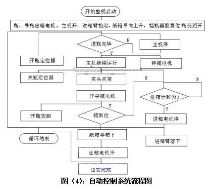 四連桿裝箱包裝機(jī)控制系統(tǒng)由電氣部分和氣動(dòng)執(zhí)行部分組成。工作過(guò)程見流程圖(圖1)。