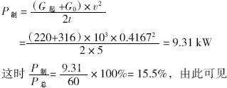 可以看出制動功率只占總功率的5%左右,也就是說平移機構制動時實際所消耗的功率是很小的。